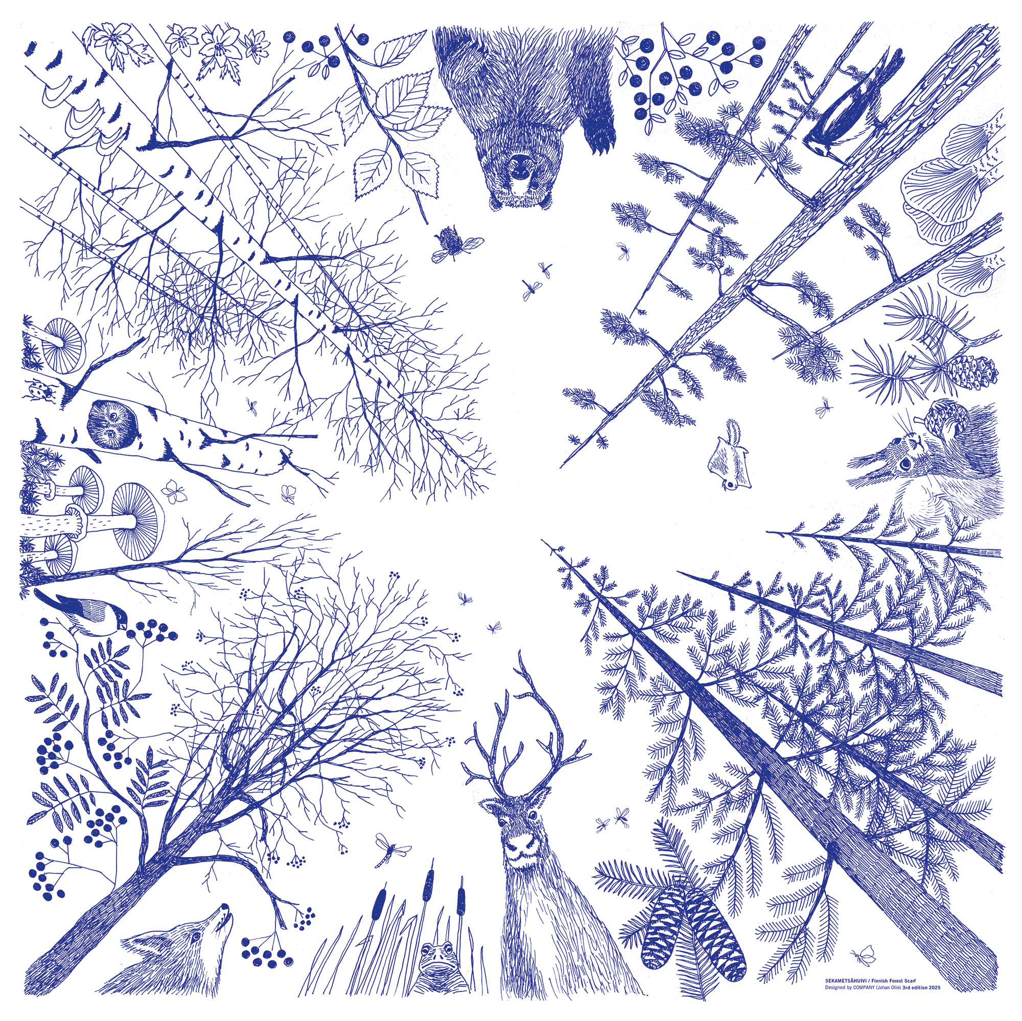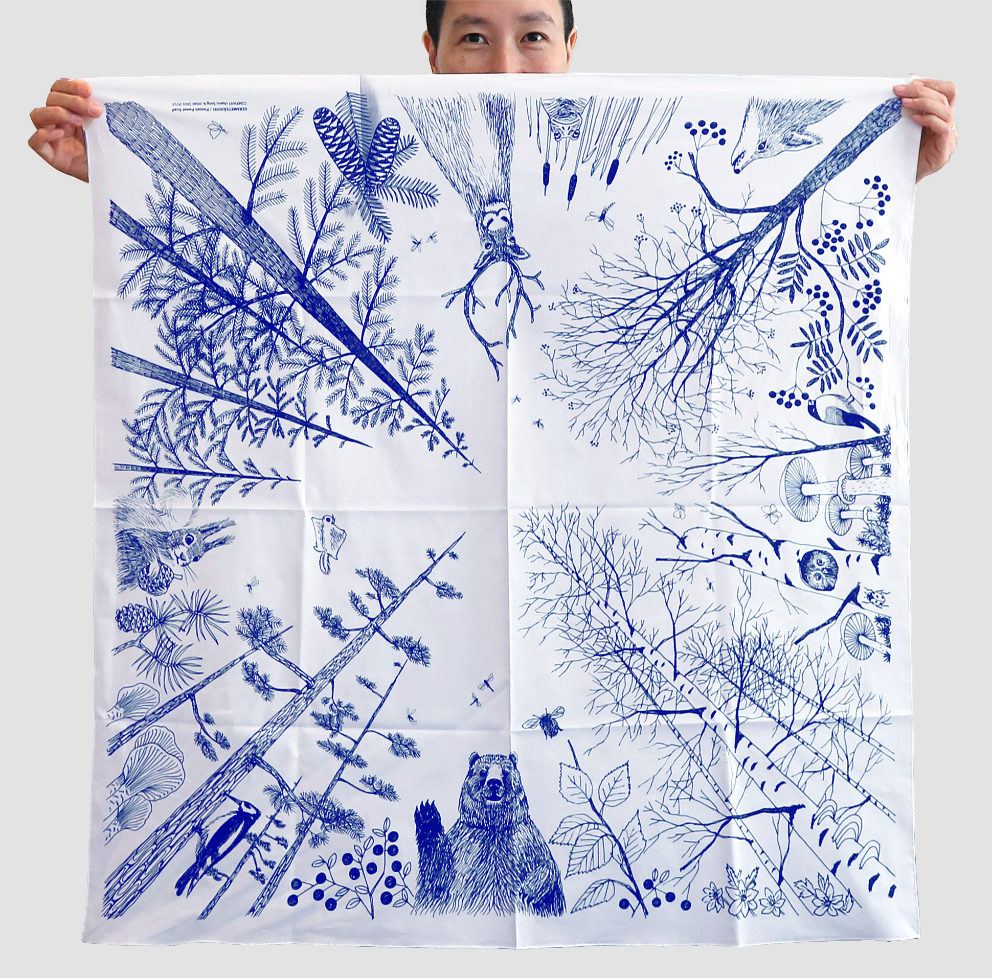 Cotton scarf with Finnish Flora & Fauna